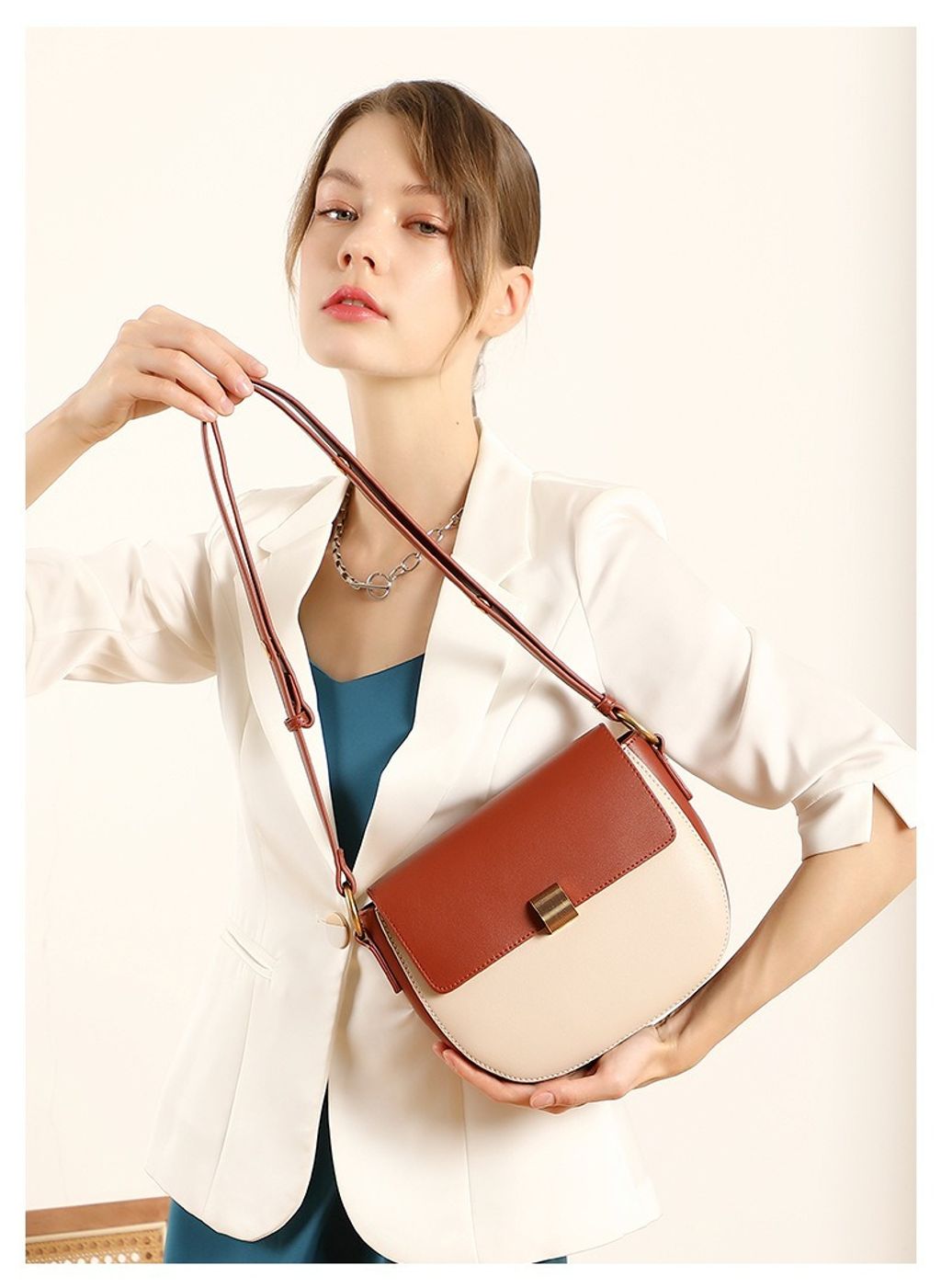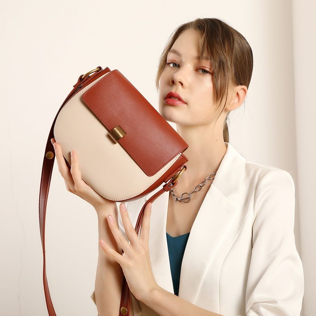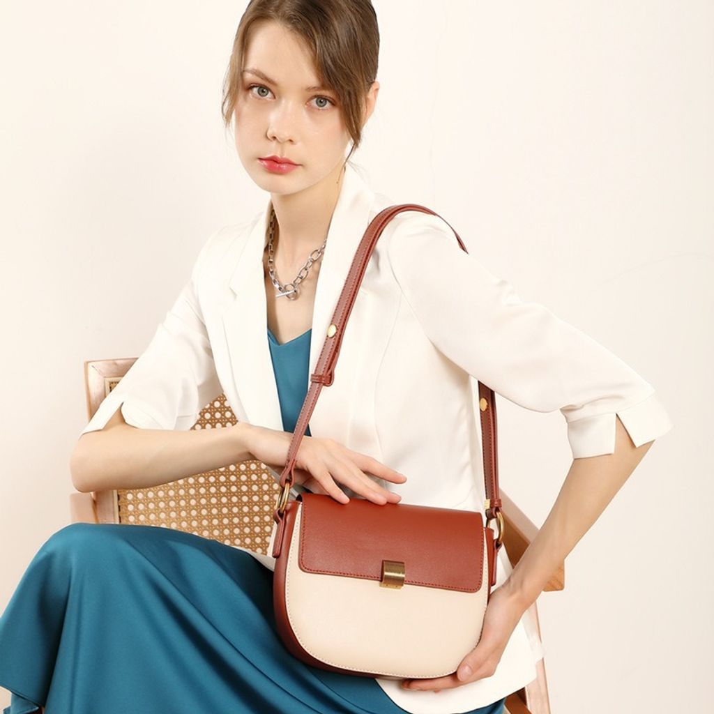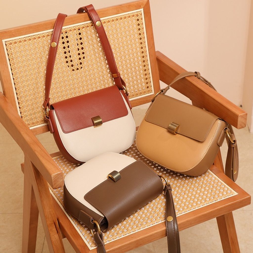 真皮雙色馬鞍包