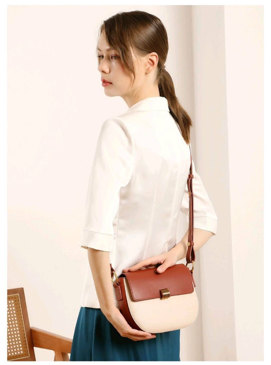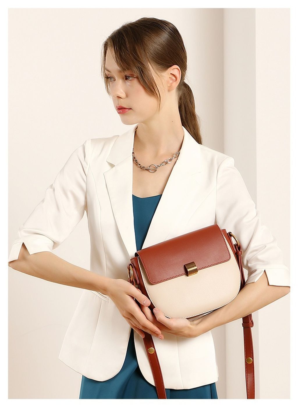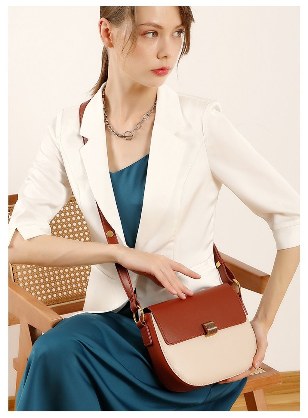 真皮雙色馬鞍包
