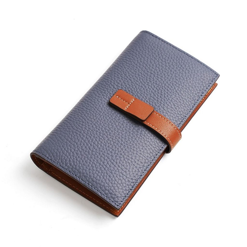 日系荔枝紋軟皮長夾 (黛藍)